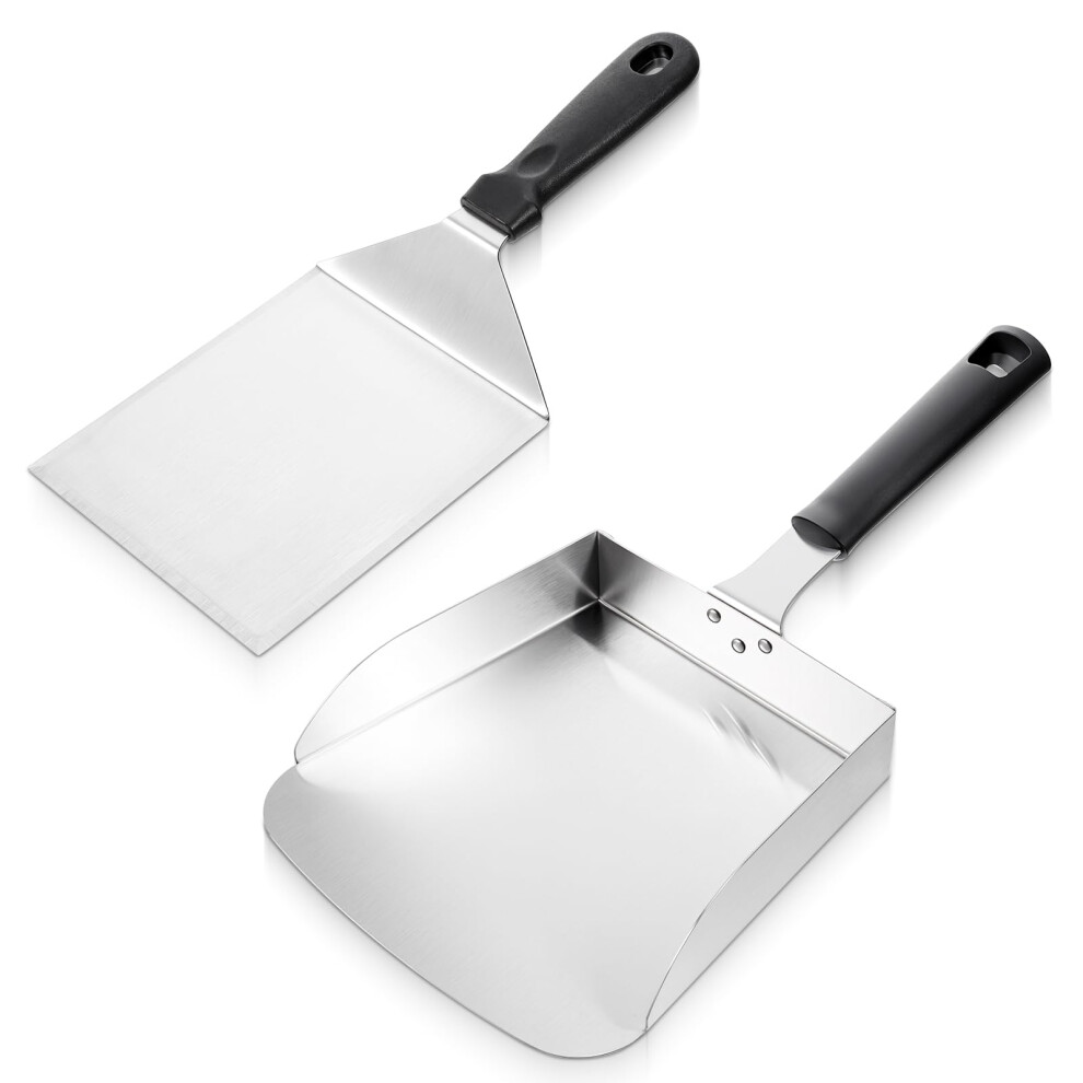 Smash Burger Spatula and Large Stainless Steel Griddle Scoop Set for BBQ Grill and Blackstone Grills