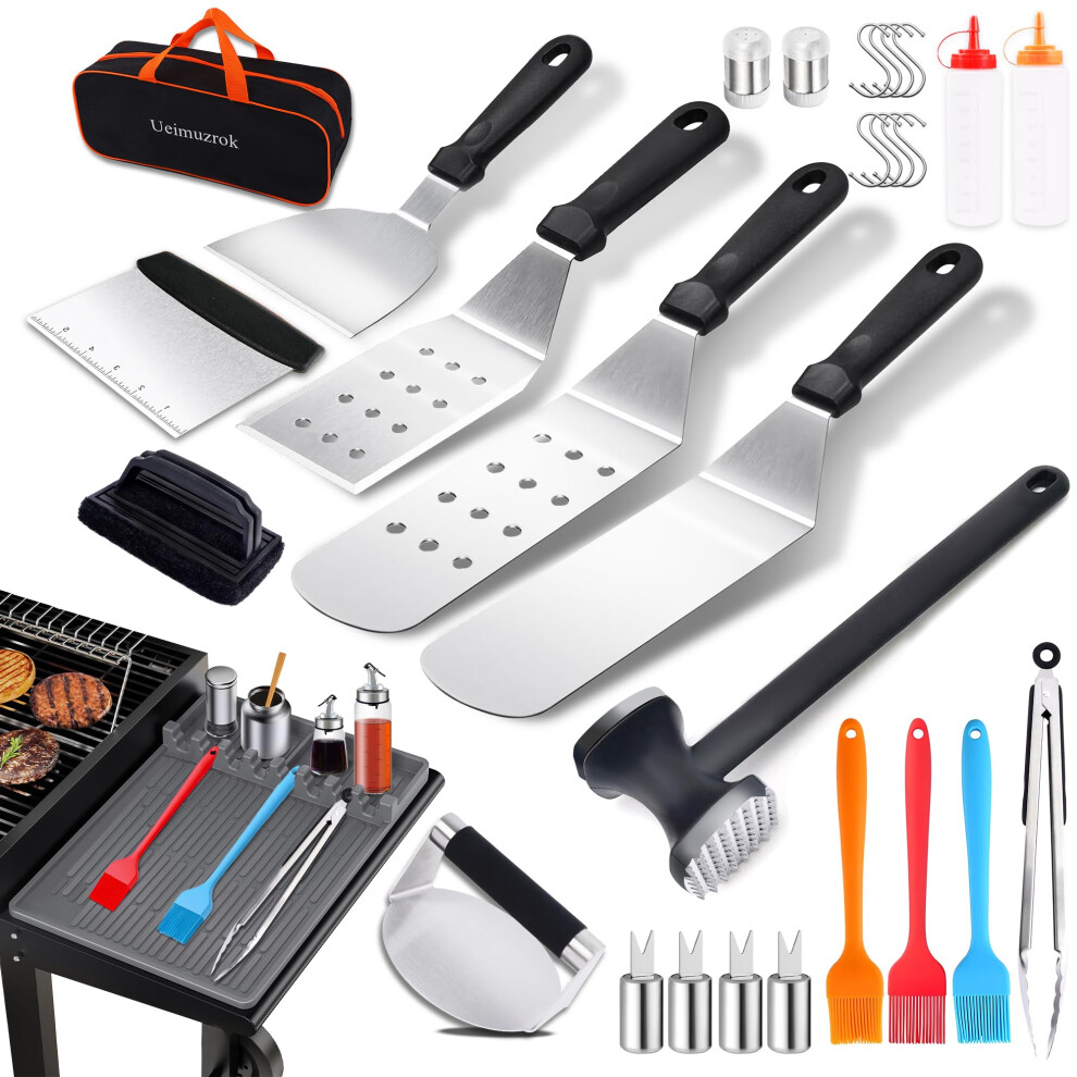 Griddle Accessories Set for Blackstone Grill â 30 Piece Outdoor BBQ Kit with Spatulas, Burger Press, HeatResistant Mat