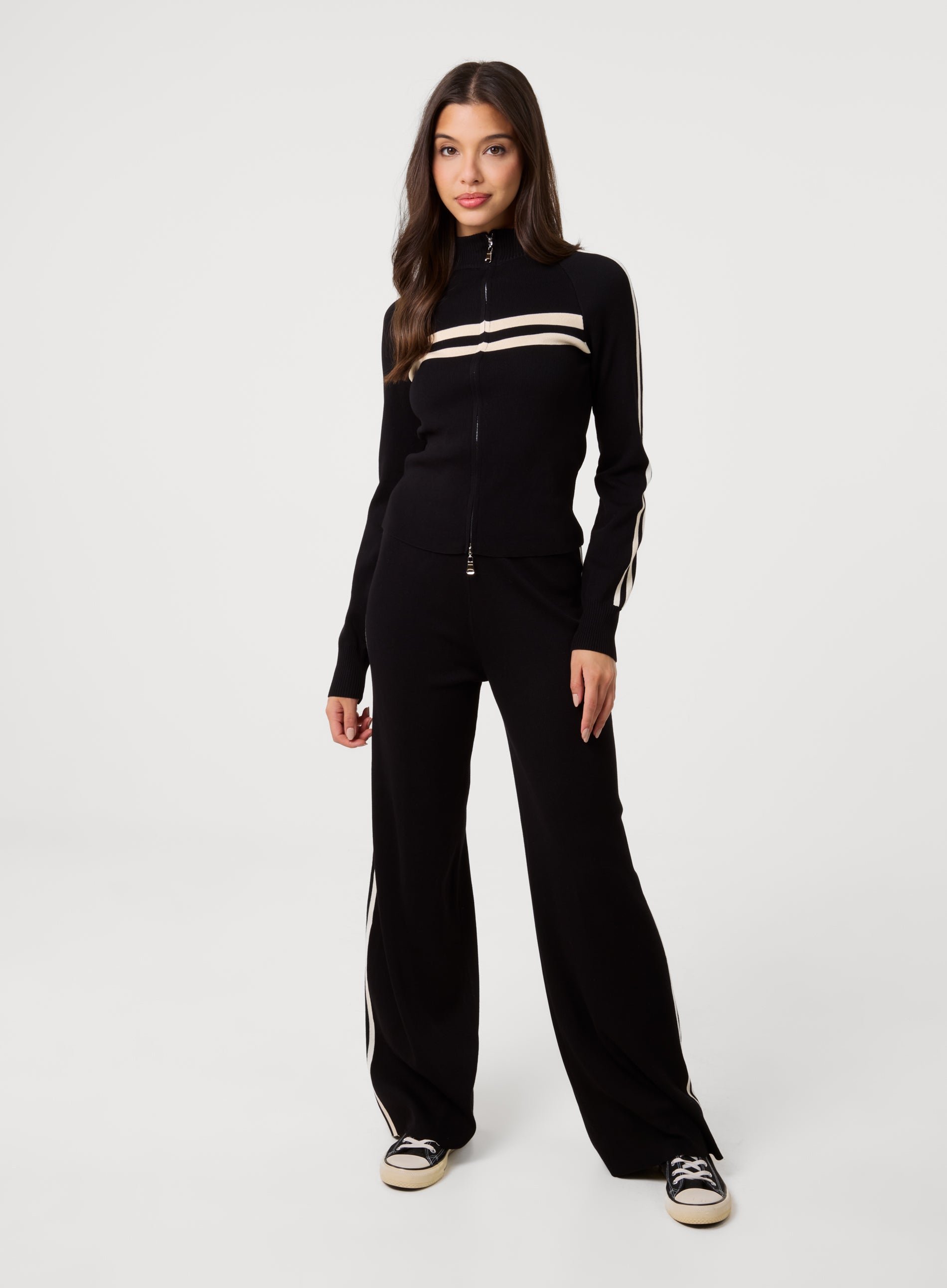 Side Stripe Wide Leg Joggers - S/M - BLACK/STONE
