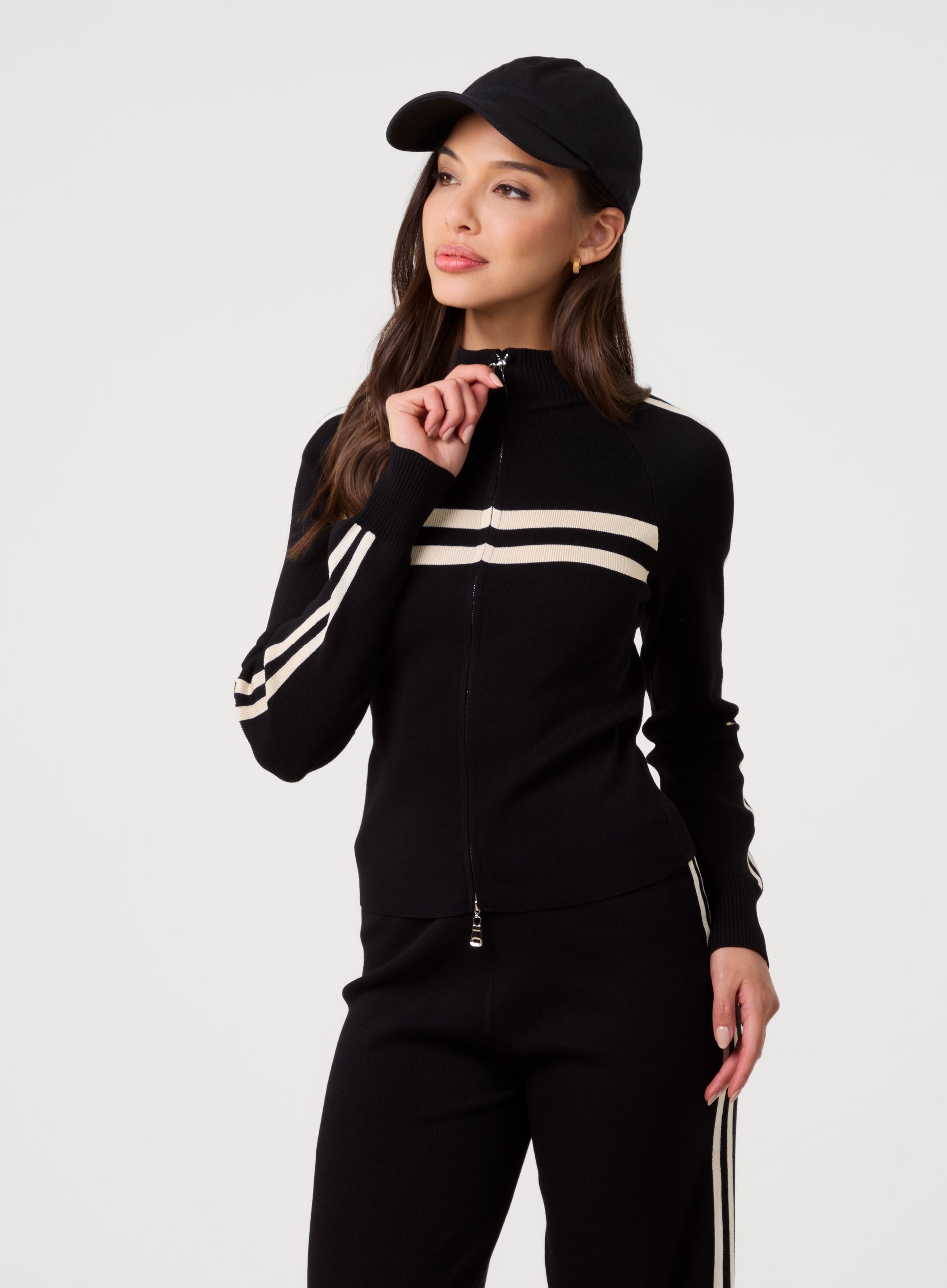Stripe Front Zip Up Sweatshirt - S/M - BLACK/STONE