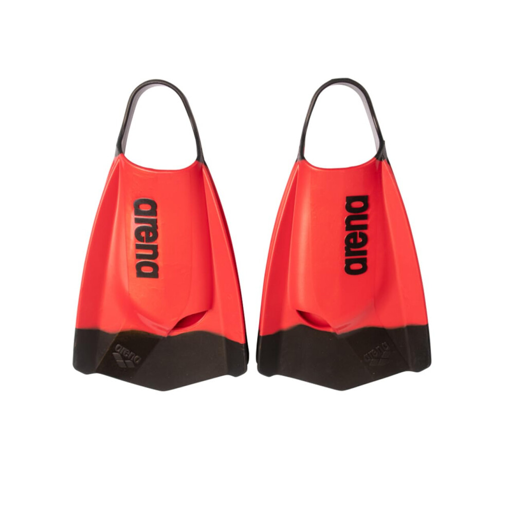 Arena Unisex Adult Powerfin Pro II Swim Training Fins Men and Women Silicone Short Blade Flippers Left/Right Customized, Red/Black, Size 4.5-5.5