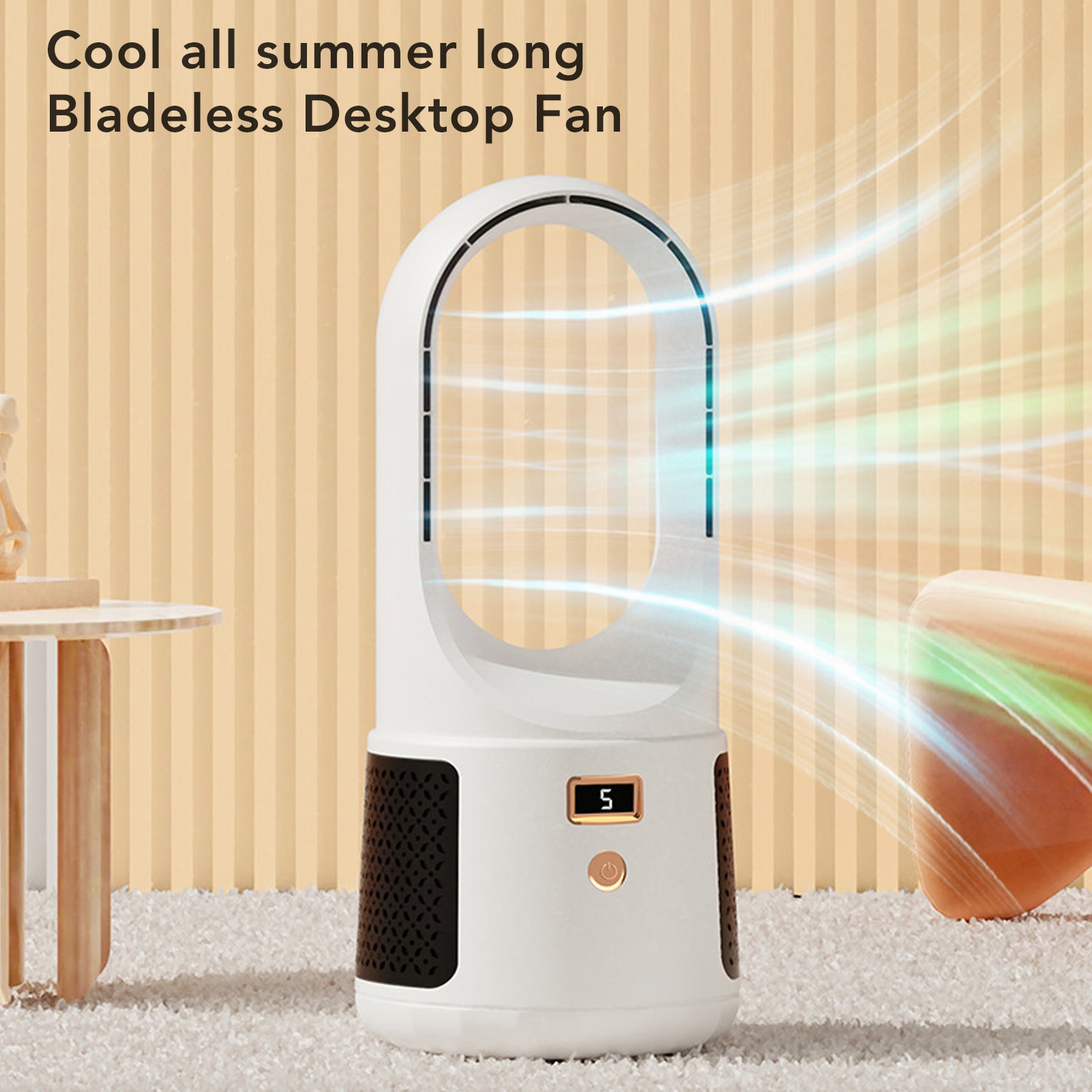 USB Desk Fan 6 Speeds Wind Quiet Bladeless Cooling Fan With Power Display For