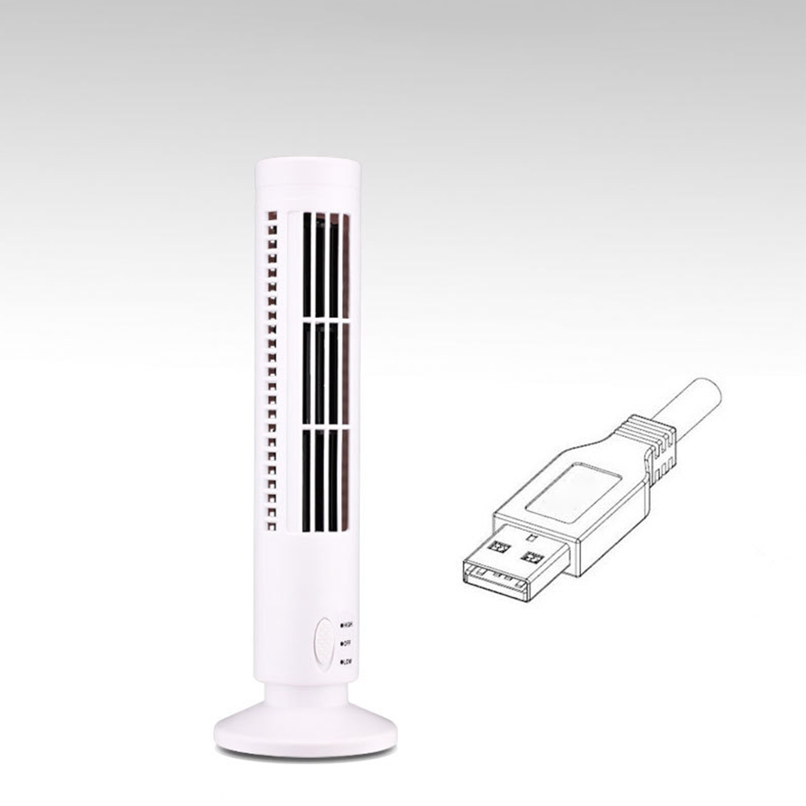 White Mini USB Bladeless Tower Fan 2 Wind Speeds And Modes Standing Fan For OU