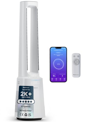 Pro Breeze® OmniAir 41" Smart Bladeless Tower Fan with Air Purifier - Silent Standing Portable Circulator - Remote Control, Wi-Fi, HEPA Filter, LED Display, 10 Fan Speeds, 5 Modes & 60° Oscillation