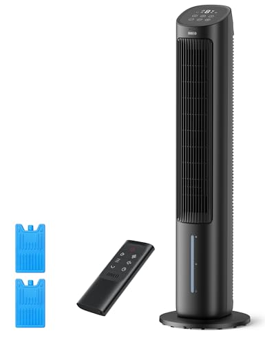 DREO 40“ Evaporative Air Cooler, 35dB Silent Cooling Fan that Blow Cold Air, 80° Oscillating Bladeless Tower Fan for Bedroom, Removable Water Tank, Ice Packs, Remote Control, 4 Speed, 7H Timer, Black