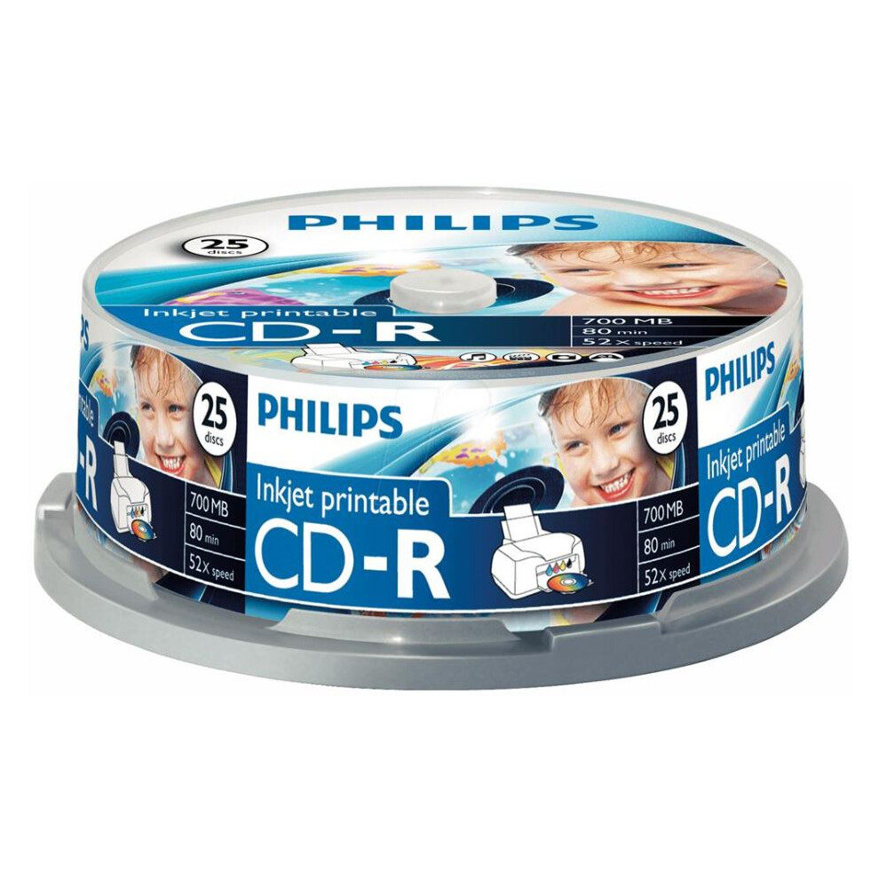 PHILIPS - Inkjet Printable CD-R Blank CDs - Spindle 25 Pack