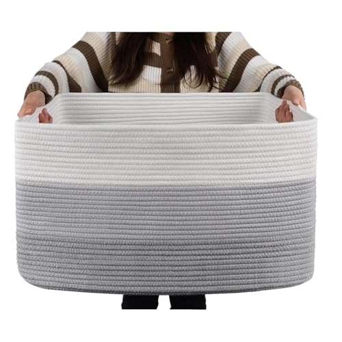 XXXLarge Storage Basket Blanket Basket Cotton Rope Baskets Woven Toy Baskets with Handle for Living Room Bedroom Comforter Cushions Storage Bin Thread Laundry Hamper, 55x35cm