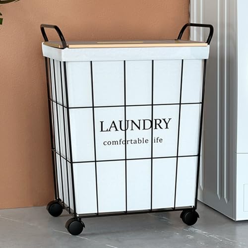 Laundry basket with removable bag, rolling blanket basket, laundry basket with metal frame for living room, bedroom, bathroom, utility room