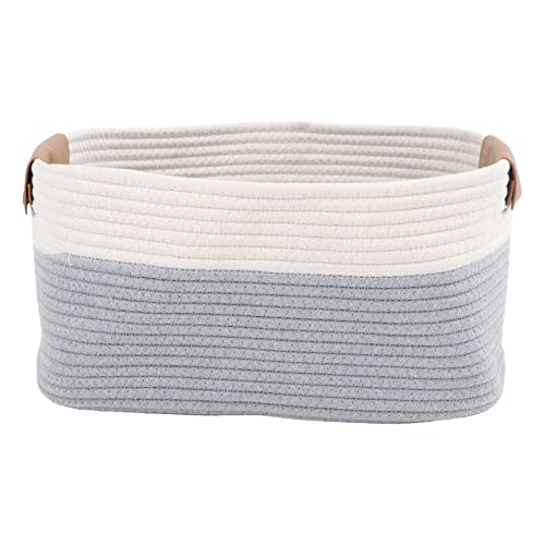 Casaphoria Large Blanket Basket 22"x16" Boho Woven Baskets for Pillows Cotton Rope Storage for Towel XXL Round Organizer Foldable Decorative Woven Hamper for livingroom Rope Hamper,Gray&Cream White
