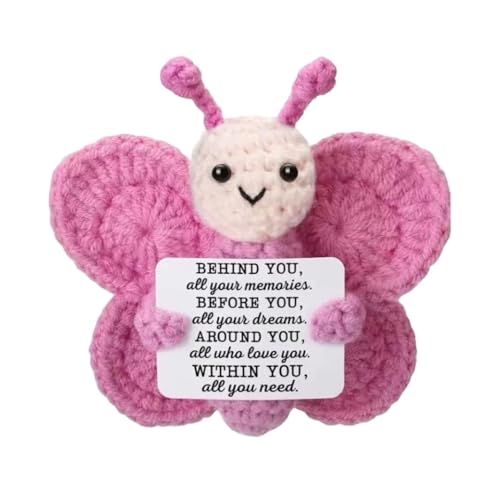 Positive Crochet Butterfly for Women, Mini Handmade Emotional Support Plush Toy for Friends, Coworkers Boss Girls Teachers on Birthday Valentines Card Bracelet Blanket Basket (Pink)