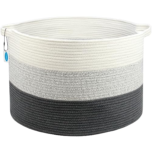 MEGASKET Large Dark Grey Storage Basket Woven Cotton Rope Storage Baskets for Storage Large Blanket Storage Basket Living Room Bedroom