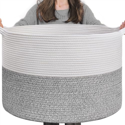 GOCAN Storage Baskets for Organizing D22"H14" Large blanket basket laundry basket Cotton Rope Woven Basket for toy towl in Living Room (Ltgrey/Beige) XXXL