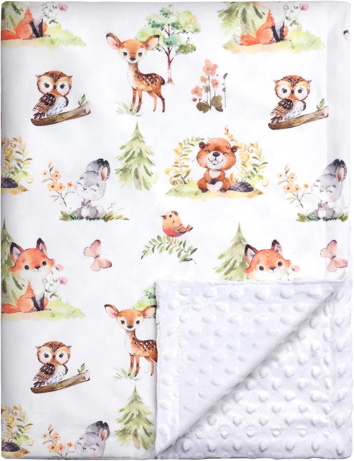 HOTUT Baby Pram Blanket, 75x100cm, Soft Plush, Animal Print, Unisex, Cotton, Sq