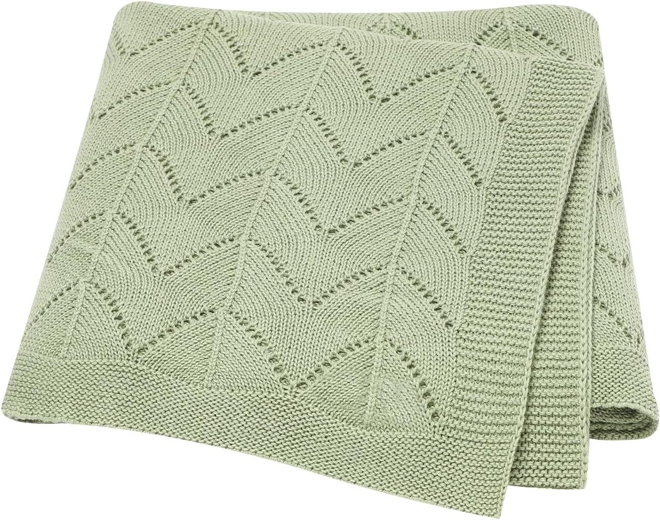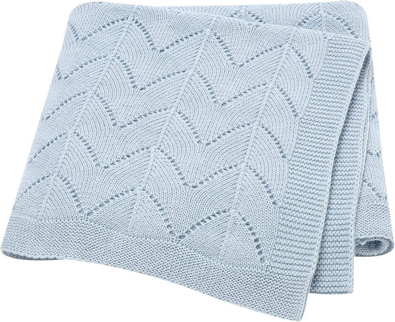 Baby Knitted Blanket Pram Cot Moses Basket Unisex Ziggle Sage Bee 100x75cm