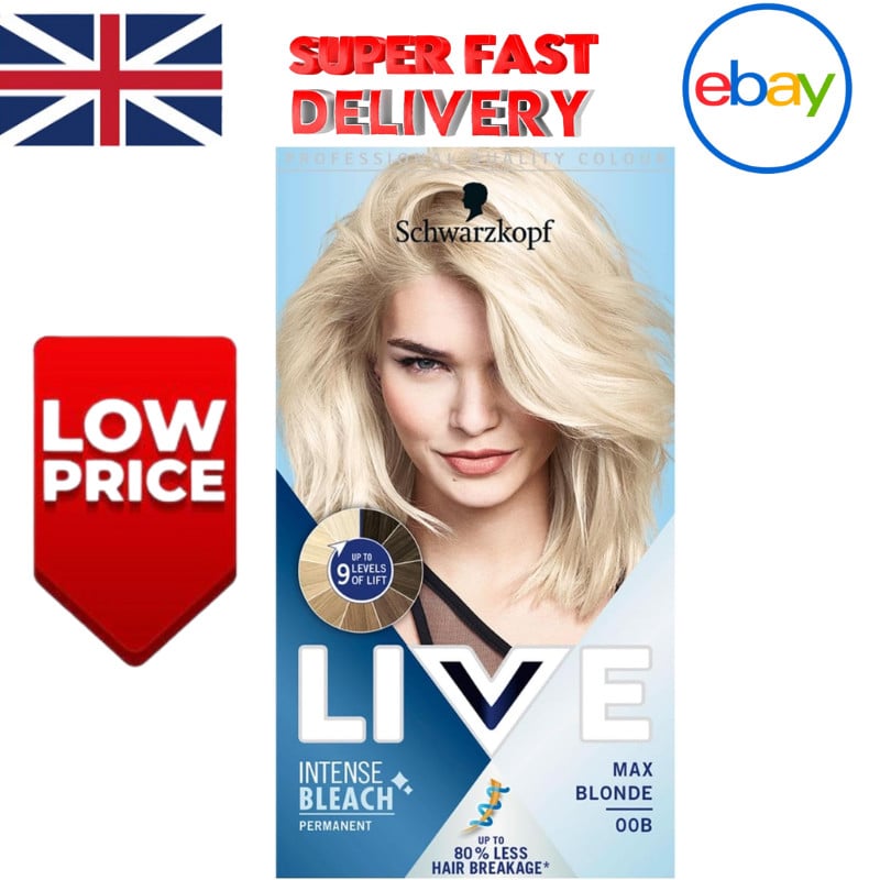 Schwarzkopf LIVE Intense Lightener Max Blonde Permanent Bleach Hair Dye 00B, ...