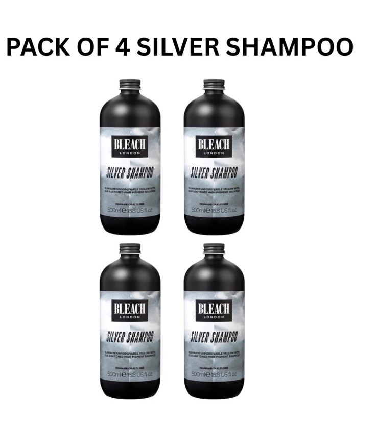 Bleach London Silver Shampoo High-Pigment Vegan, Cruelty-Free 500ml Pack of 4
