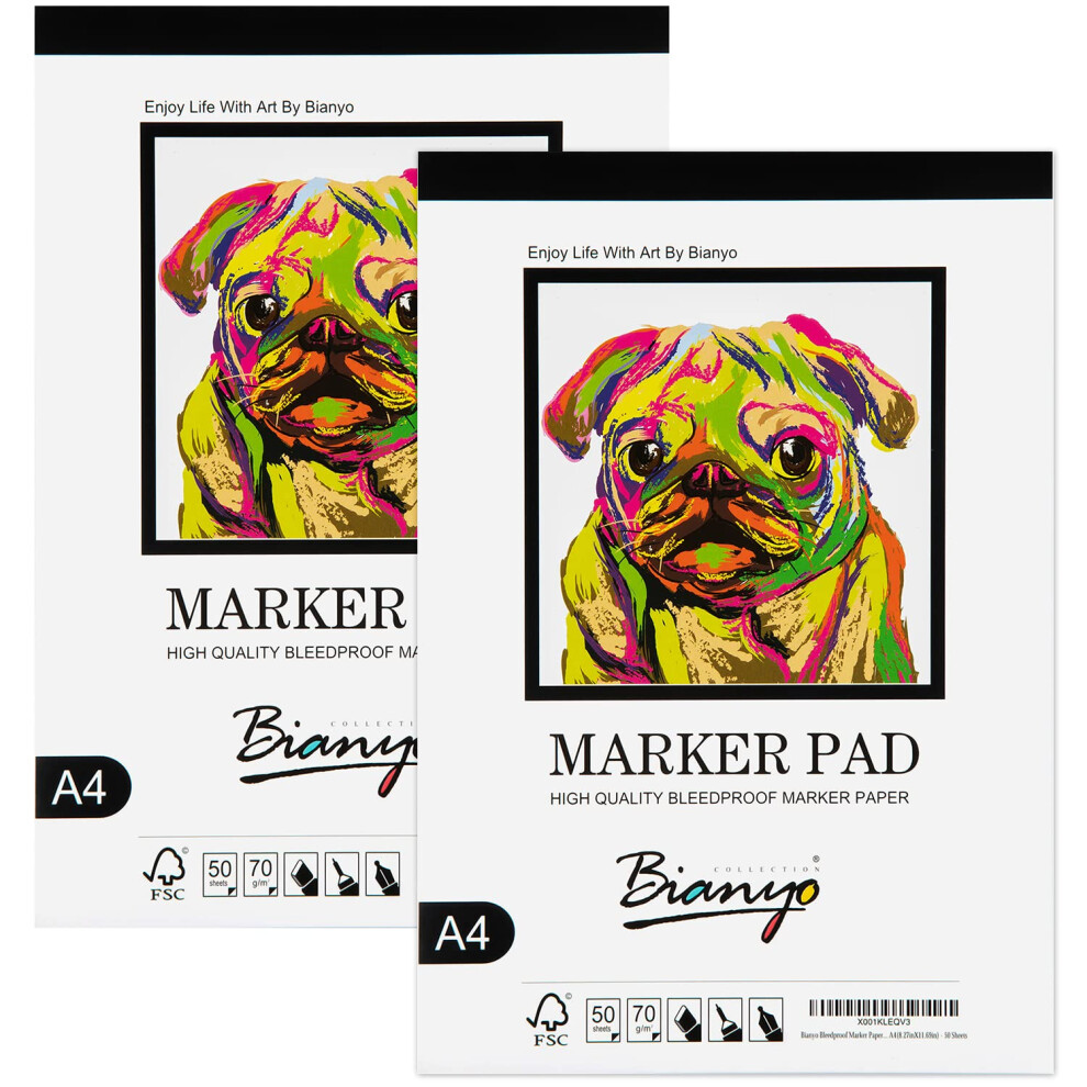 Bianyo Bleedproof Marker Paper Pad A4(8.27""""X11.69"""") 50 Sheets/Pad Pack of 2 Pads 18 LB / 70 GSM Glue-Bound 100% Cotton White Ideal for Use
