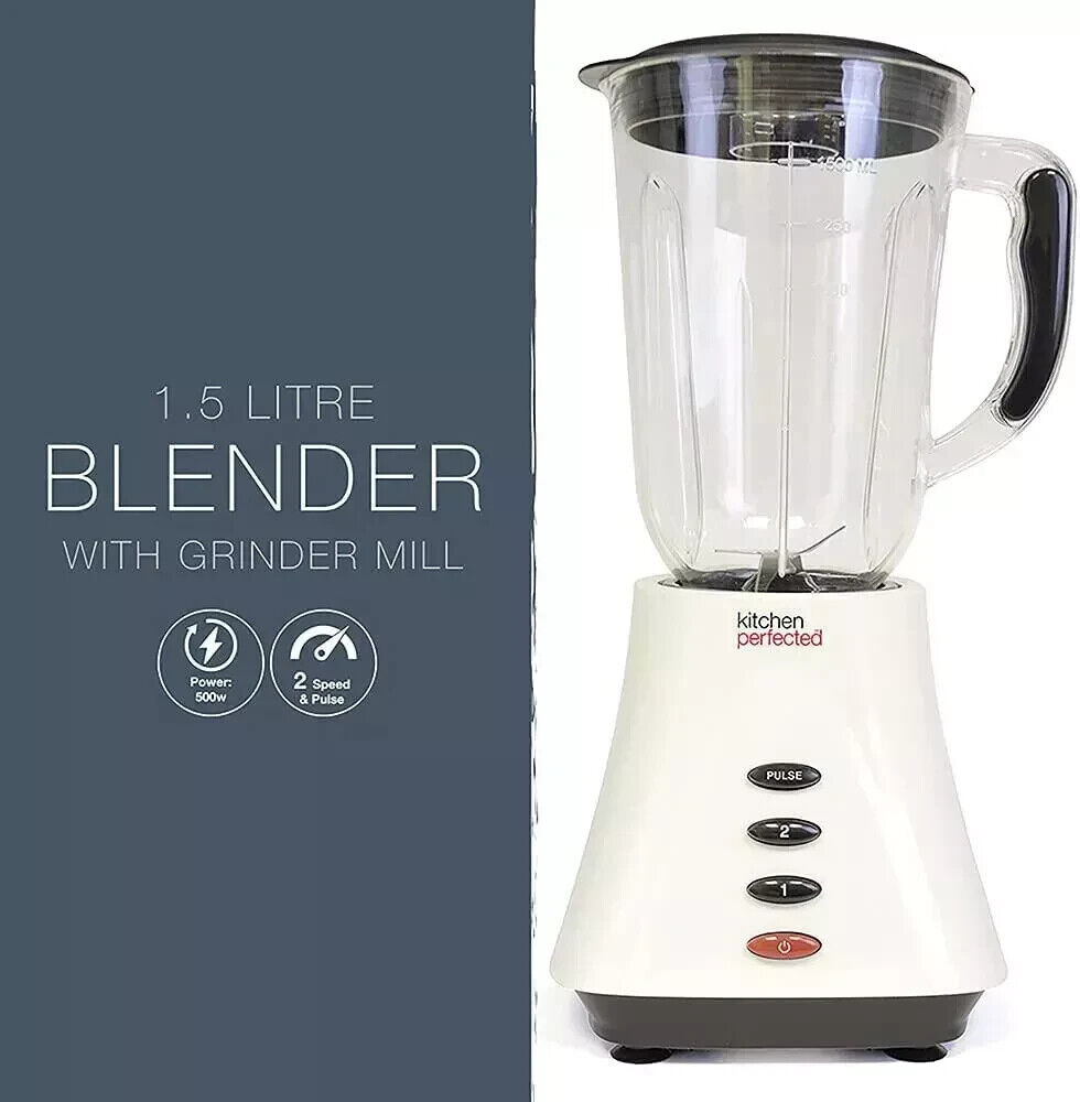 1.5L Blender With Grinder Smoothie Maker Food Processor 4 Speed 500W Home White
