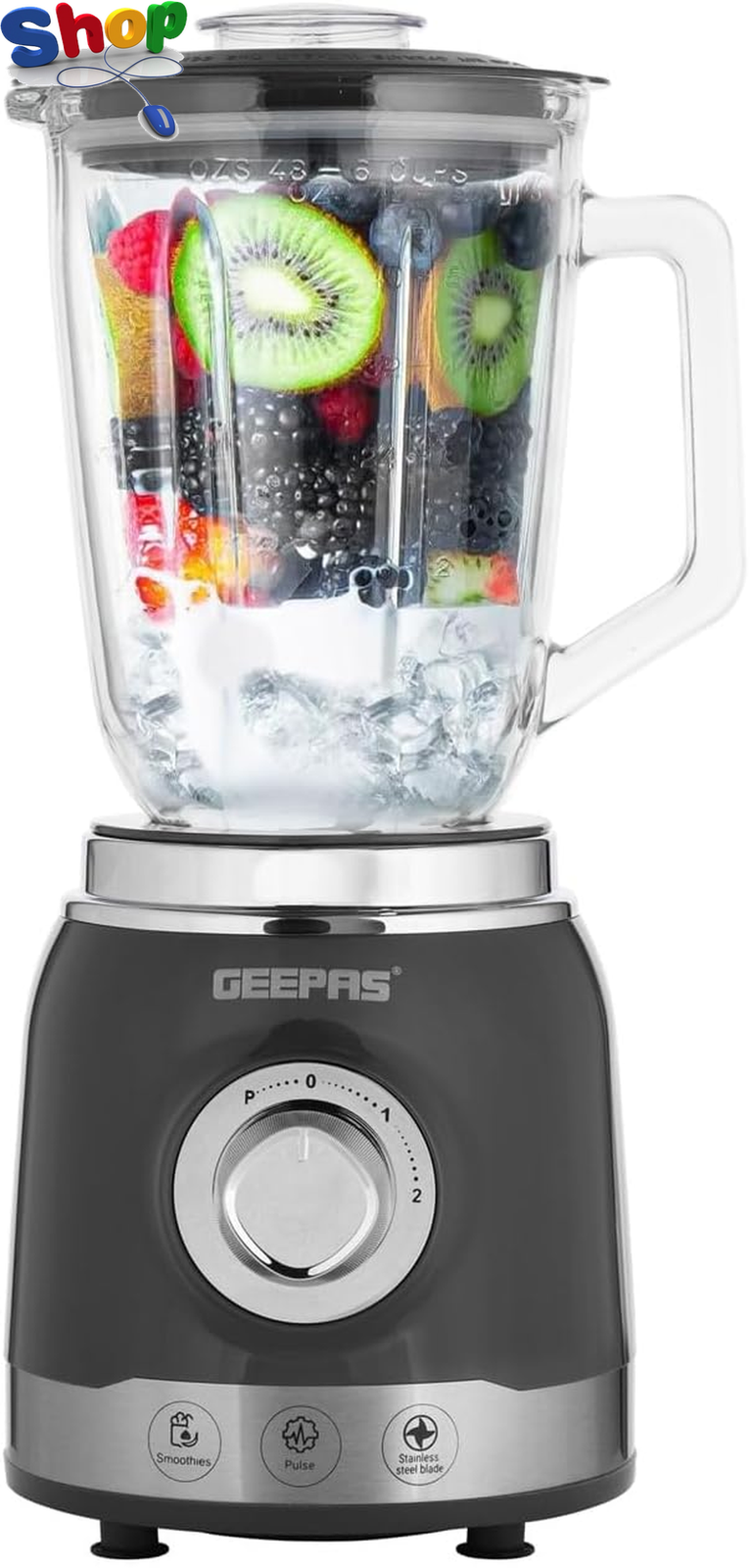 GEEPAS 1200W Electric Jug Blender Smoothie Maker | 1.8L BPA-Free Tritan Jar | Ice Crusher, Pulse, Clean Functions | Food Mixer for Milkshake, Juice 1200W, Silver/Black