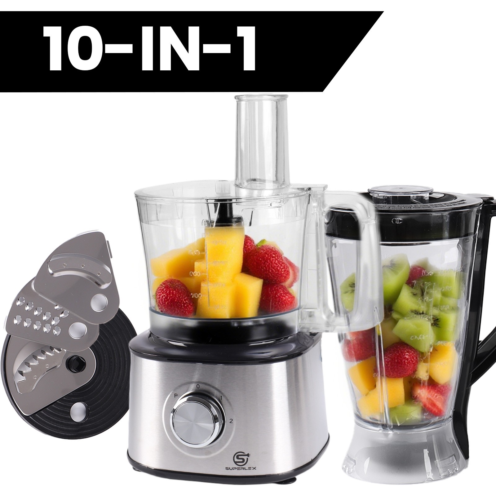 SUPERLEX Electric 2.1L Food Processor Chopper 1.75L Jug Blender Smoothie Maker