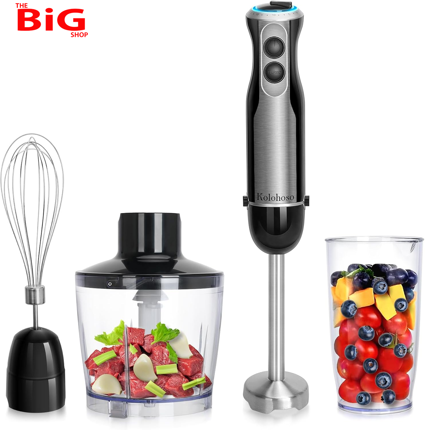(As show, One size) Hand Blender 5-in-1 Stick Blender with Mixing Beaker Meat & Vegetable Grinder Egg Beater Food Smoothies Chopper
