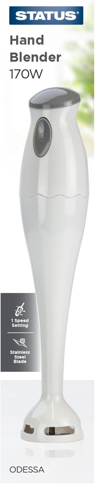 STATUS Odessa Hand Blender, 170 W Corded Stick Blender with Single-Speed Settings, Ergonomic Lightweight Design with Stainless Steel Blade, Gloss White (ODESSA1PKB4)