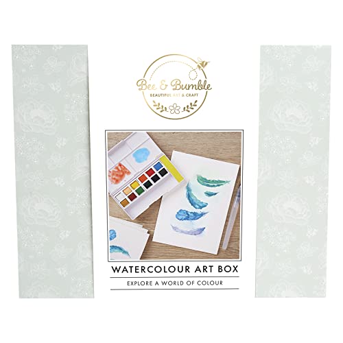 Bee & Bumble Watercolour Art & Crafts Paint Box, Oil Pastels, Soft Pastels, A5 Mixed Media Pad, Blending Stump, For The Budding Artist, Perfect For Adults And Children And Artists On The Go