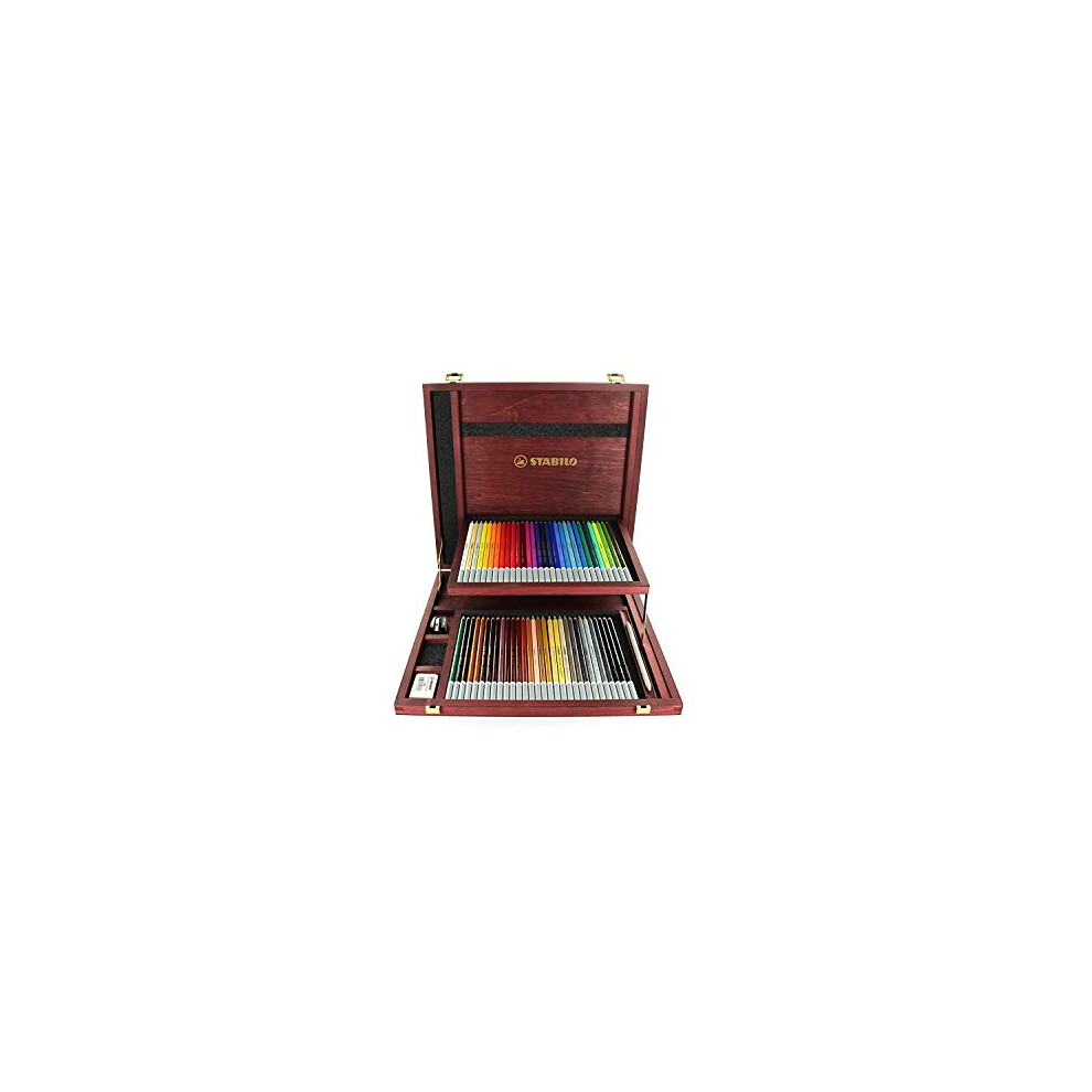 STABILO CarbOthello - Chalk-Pastel Pencil - Wooden Box of 60 - Assorted Colours with Sharpener, Kneaded Eraser and Blending Stump