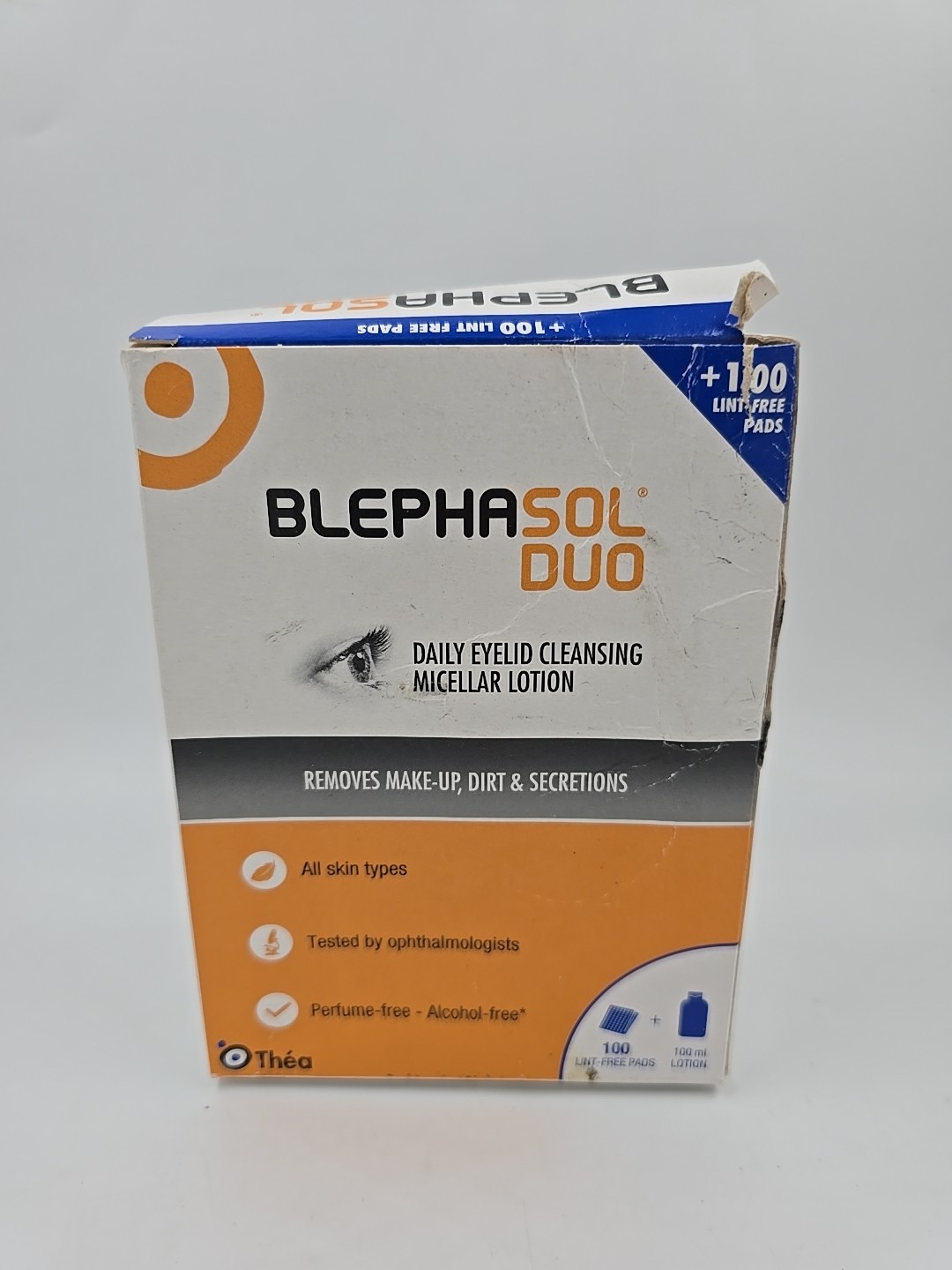Thea Blephasol Duo 100ml Lotion + 100 pads better value then blephaclean wipes