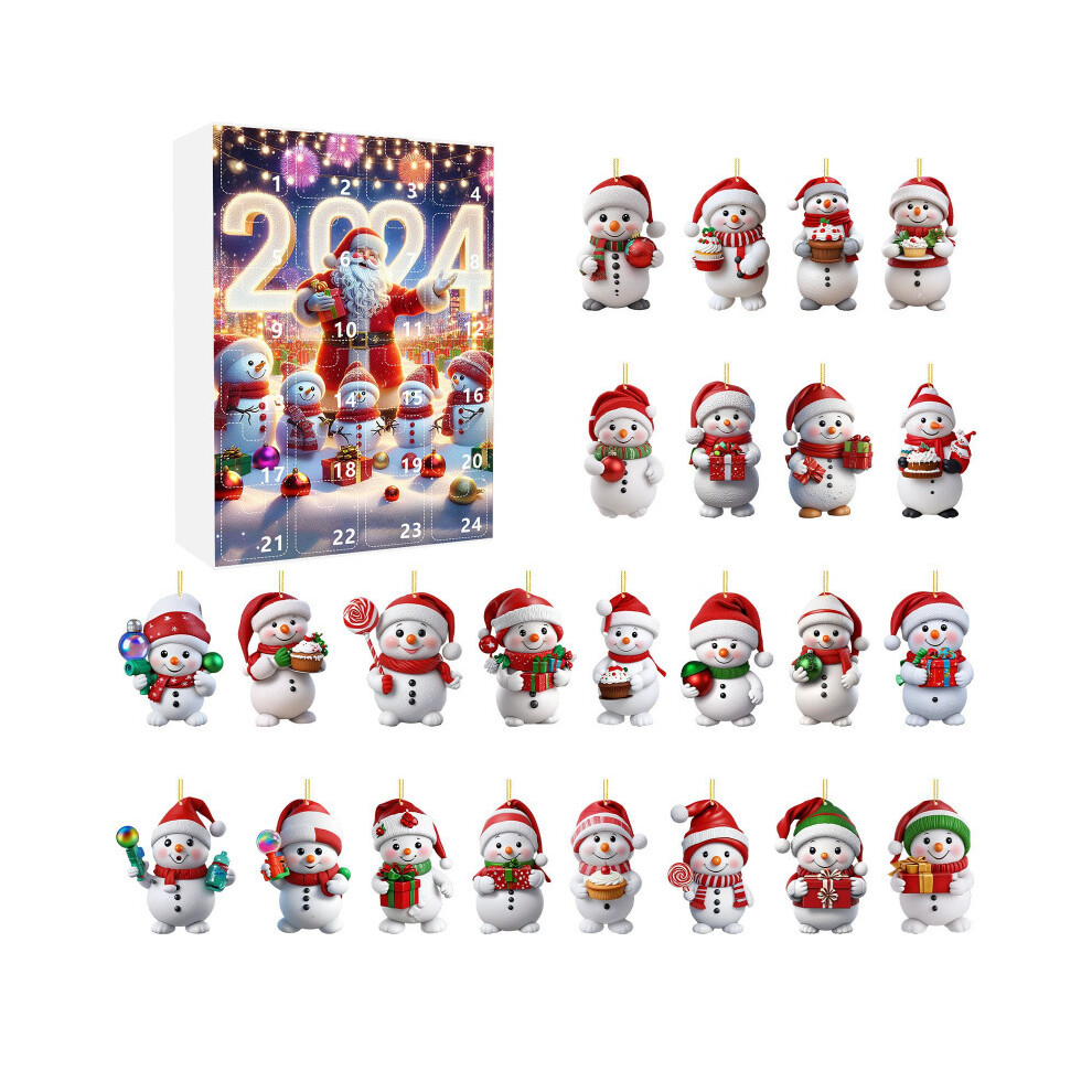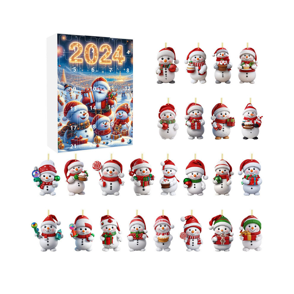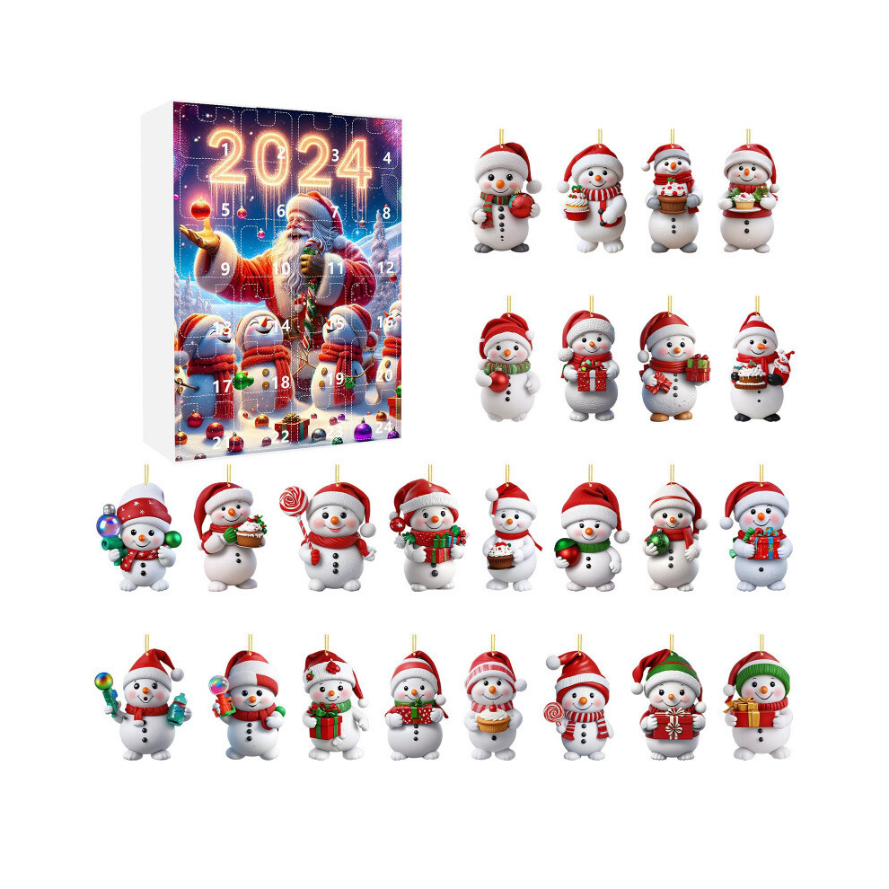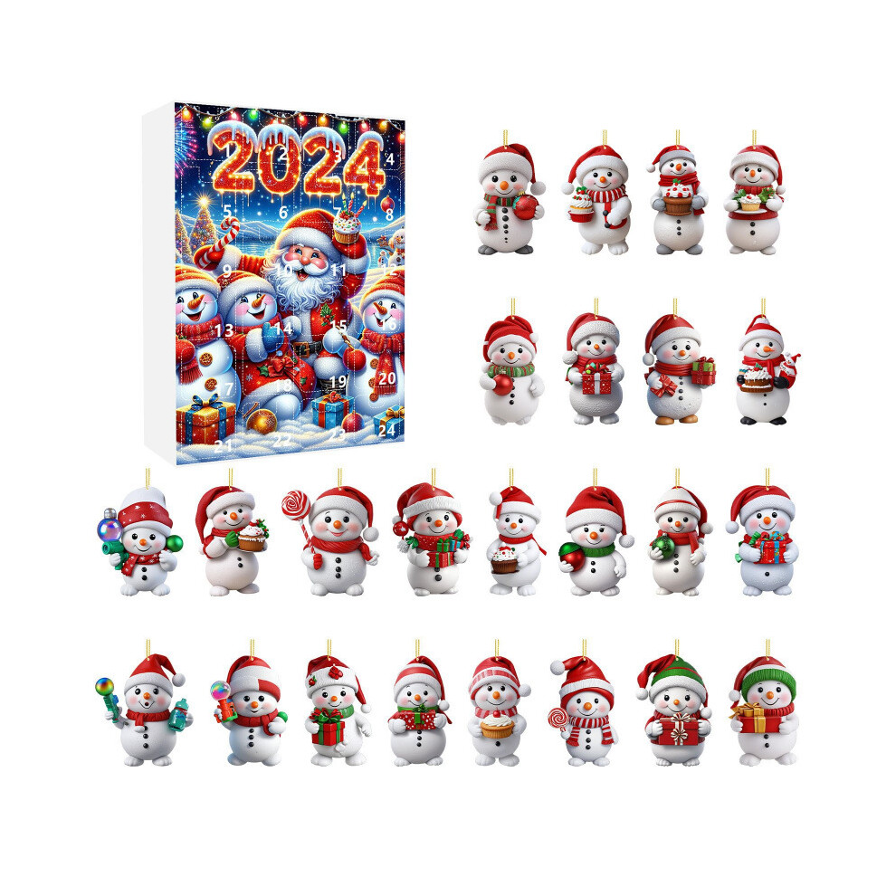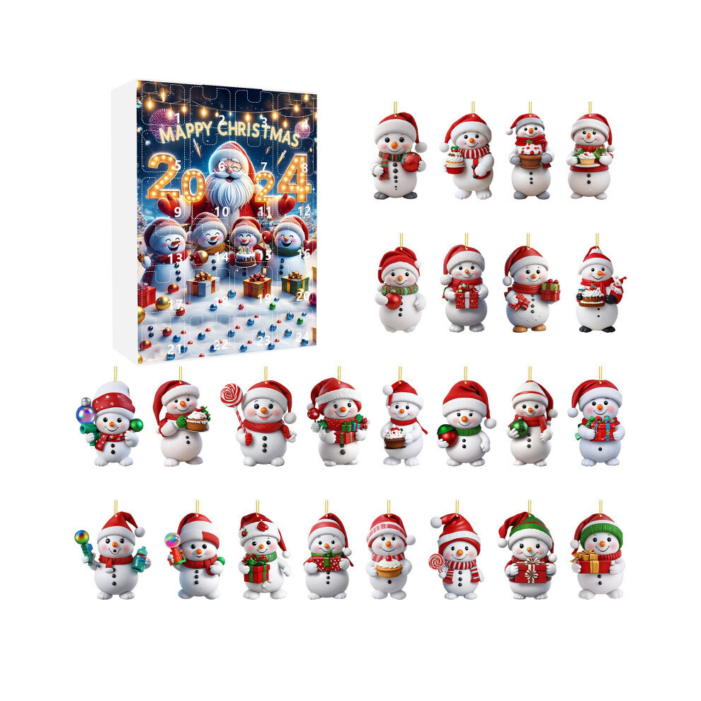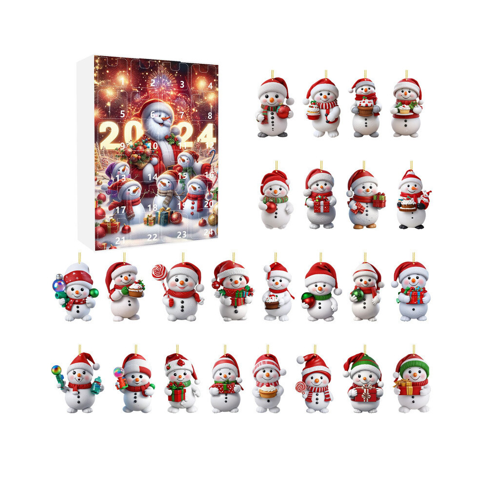 (Blind Box B) Christmas Blind Box 2025 New Year Snowman Ornament Advent Calendar Blind Box Acrylic Christmas Tree Hanging Decor