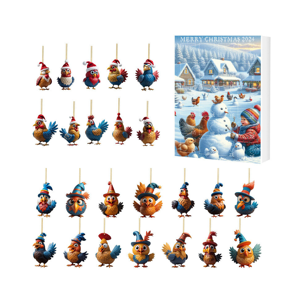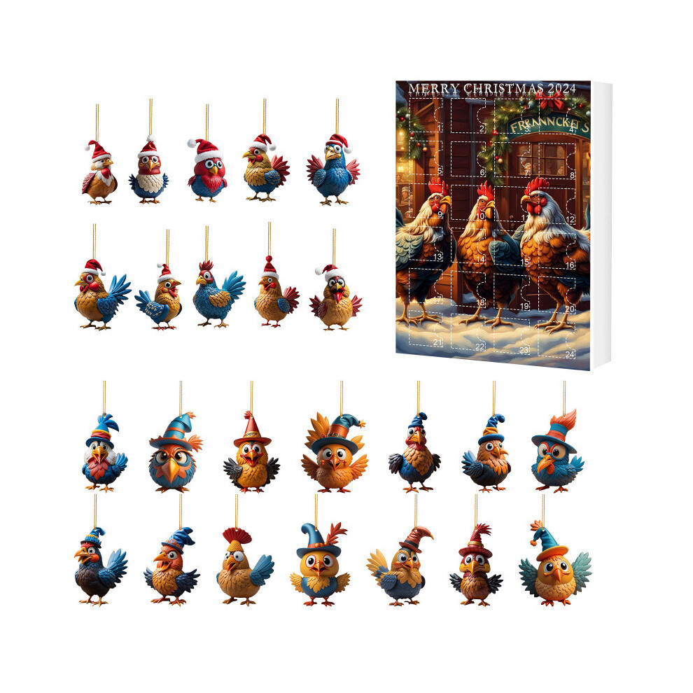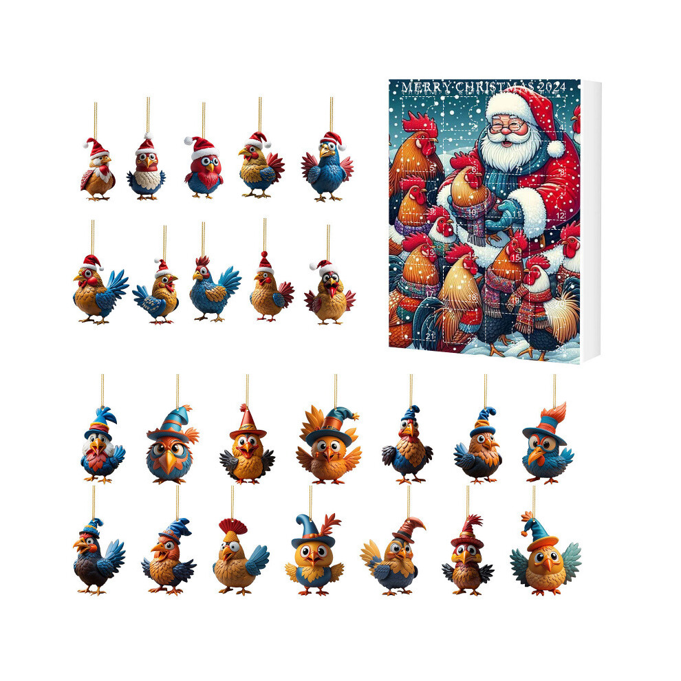 (Christmas Blind Box C) Christmas Blind Box - 24-Day Countdown Calendar Blind Box, Acrylic Rooster Ornament, Christmas Tree Decoration