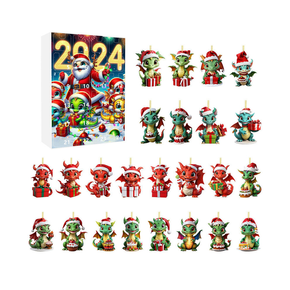 (Blind Box B) Christmas Blind Box, Advent Calendar Countdown Blind Box, 24-Day Countdown with Dragon Baby Ornament
