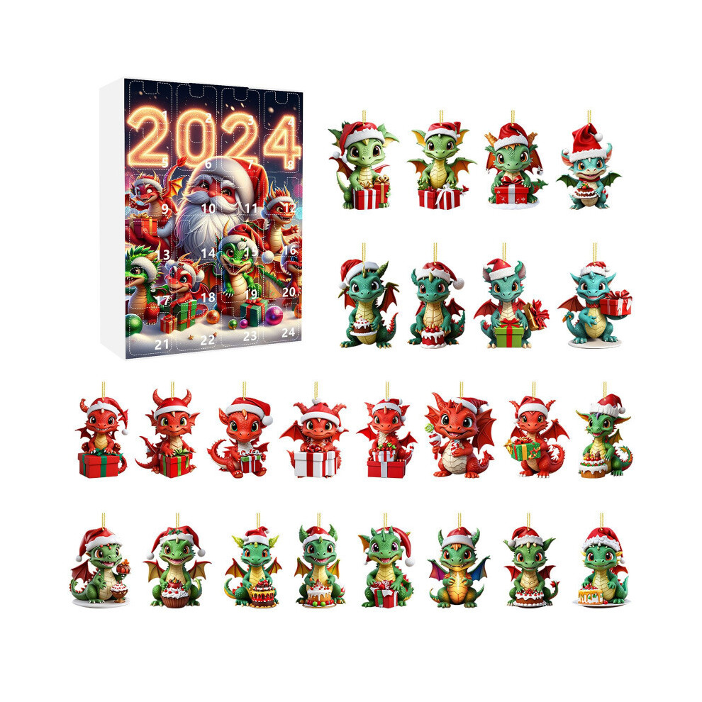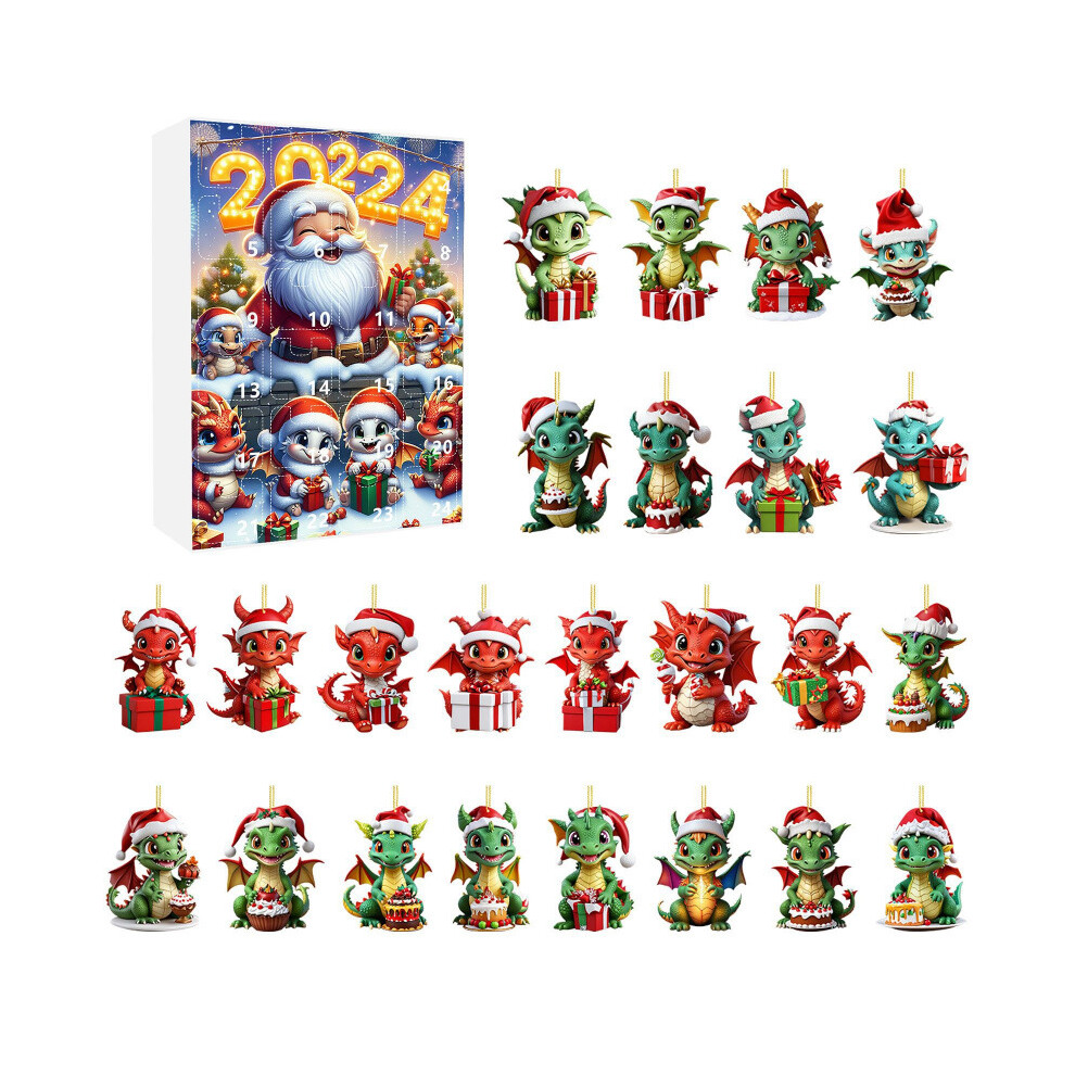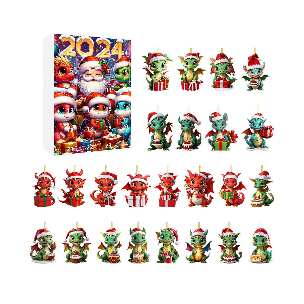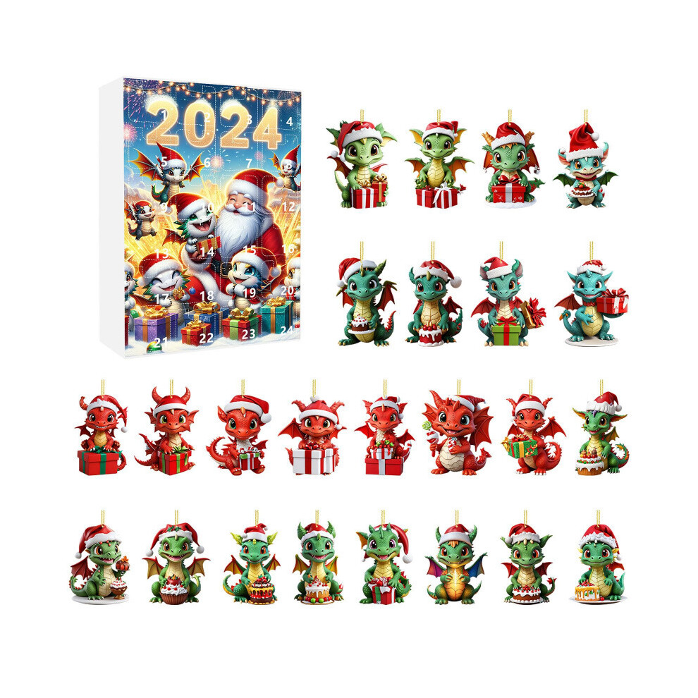(Blind Box D) Christmas Blind Box, Advent Calendar Countdown Blind Box, 24-Day Countdown with Dragon Baby Ornament