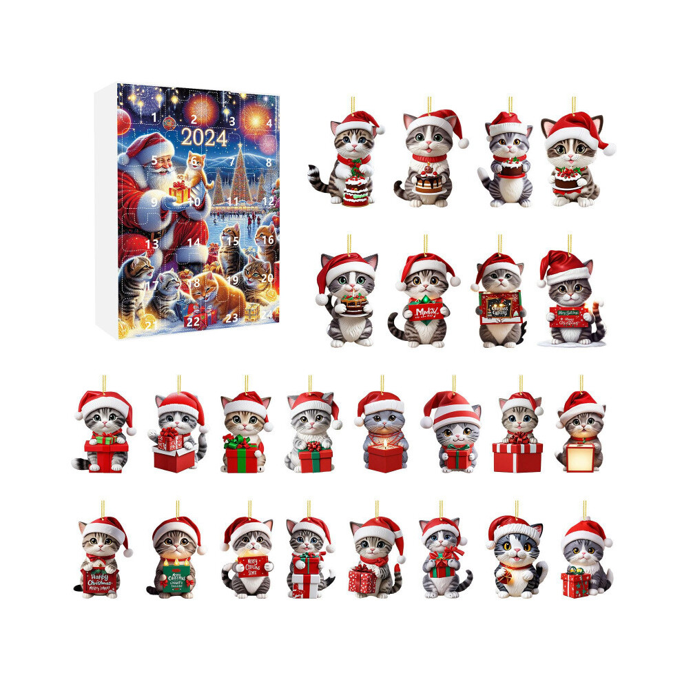 (Style F) Christmas Countdown Calendar Blind Box, Christmas Blind Box, Acrylic Christmas Tree Decoration Cat Pendant