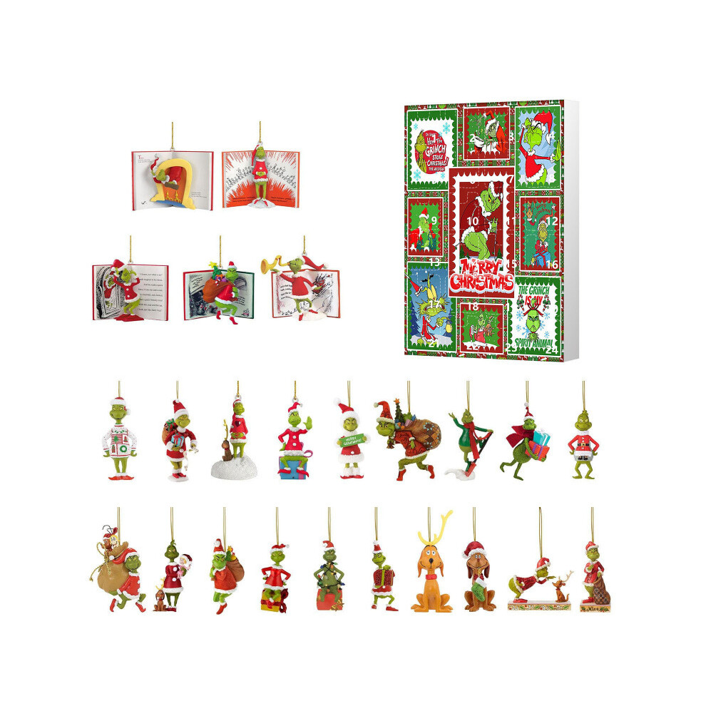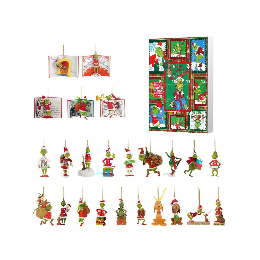 (Christmas Grinch Blind Box) Advent Calendar Blind Box Horror Halloween Figure Doll 24 Day Countdown Calendar Kids