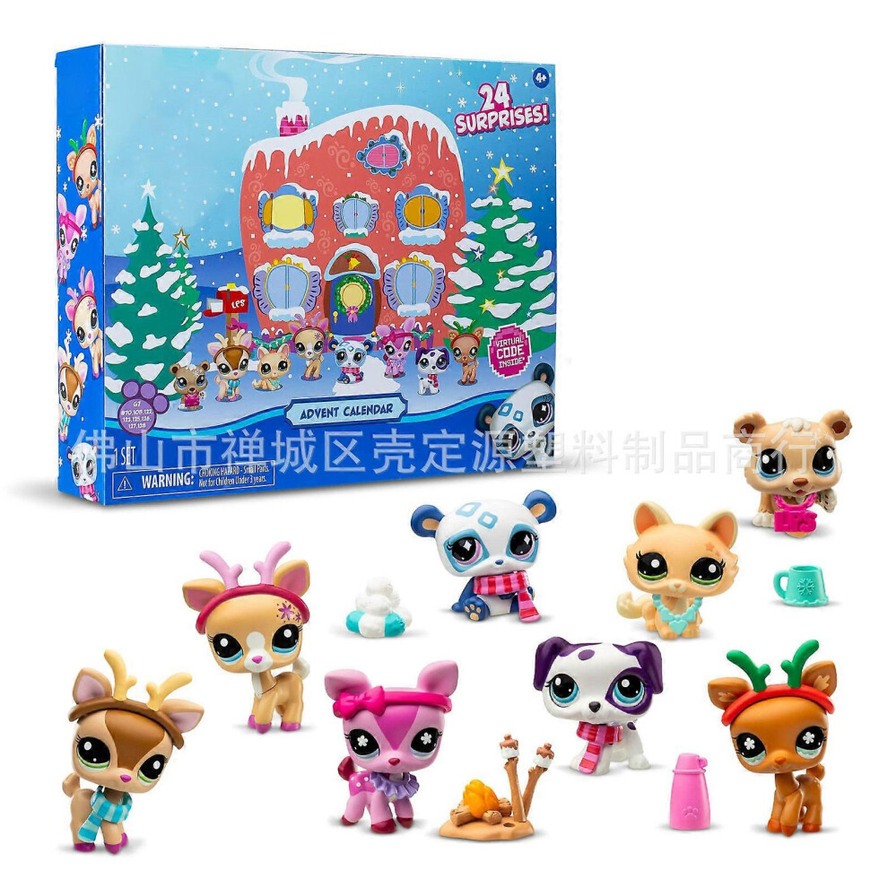 (A) New Christmas 24 Day Anime Doll Blind Box Countdown Calendar Blind Box Decoration Cartoon Cute Pet Garden Children'S Toys