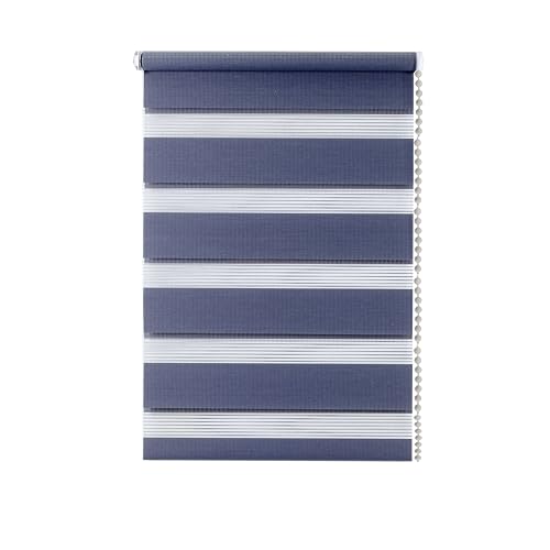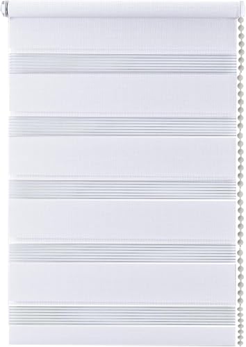 Ev Dekor Zebra Day and Night Roller Blinds, Dual Layer Fabric Easy Fit Blind Curtain, Drilling & No Drilling Vision Window Blinds for Home Office White 64 x 165 cm