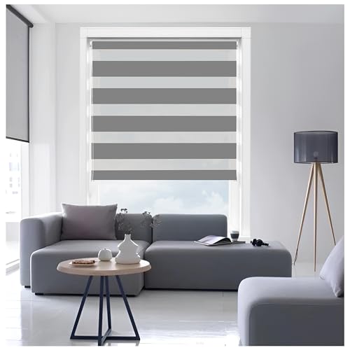 Ruby Deals Day and Night Roller Blinds Window- Dual Layer Fabric Zebra Roller Blind Door Curtain for Bedroom Windows- Day Night Blinds (Grey, W 213cm x 210cm H)