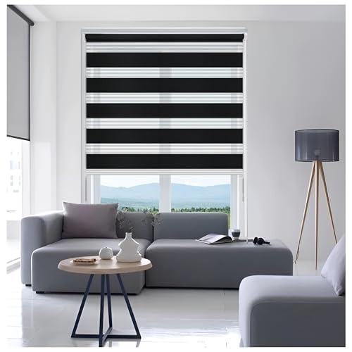 Ruby Deals Day and Night Roller Blinds Window- Dual Layer Fabric Zebra Roller Blind Door Curtain for Bedroom Door Windows - Day Night Blinds (Black, W 243 x L 165cm)