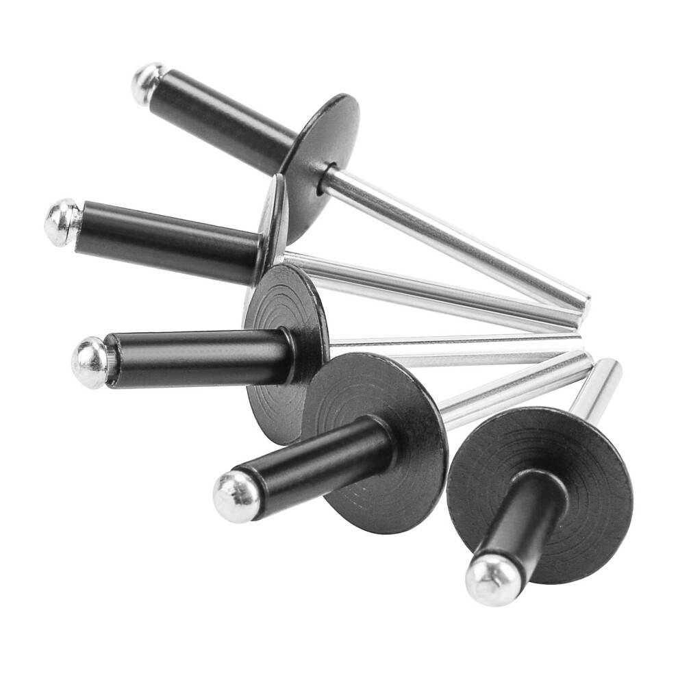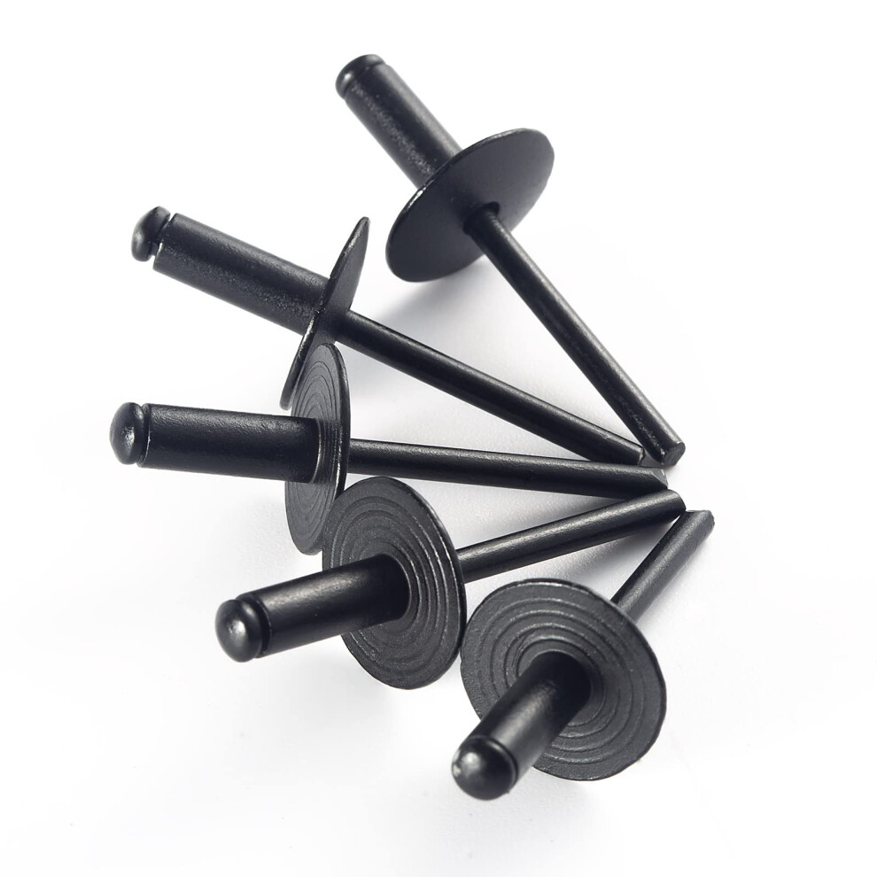 100pcs black Large Flange Blind Rivets Aluminum Flange Diameter 5/8 16mm Pop Rivets Assortment Kit Blind Rivet 3/16 x 3/8 Grip Range 6-8mm