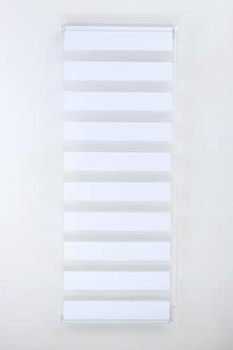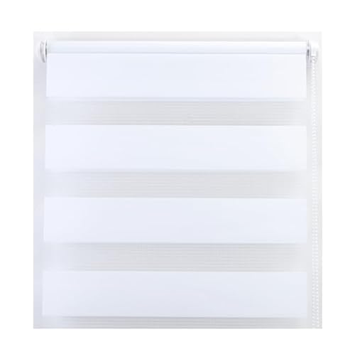 Ruby Deals Day and Night Zebra Roller Blind Dual Layer Fabric Door Blinds for Windows Curtains White Blinds Window Roller no Drilling/Drilling W64cm x H165cm