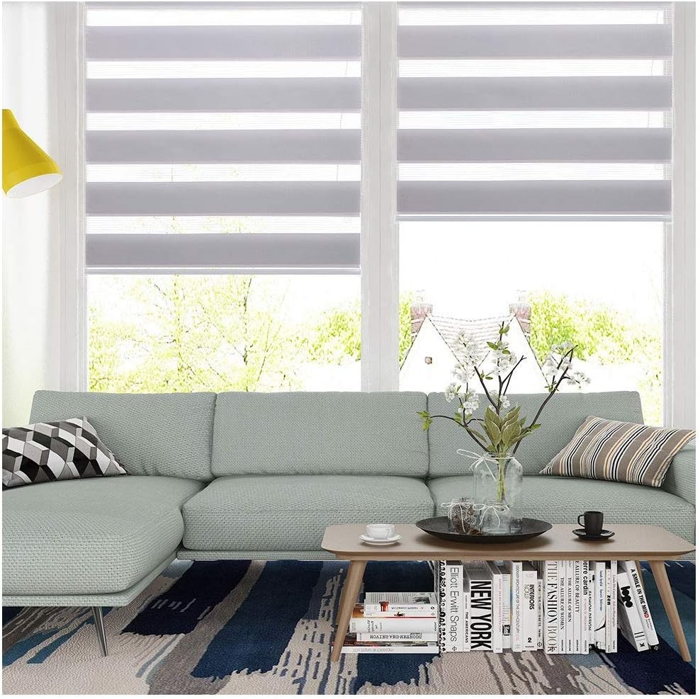 SMONTER Easy Fix Zebra Roller Blind,Day and Night Blinds Curtains with Install Accessories (110CMx150CM, GREY)