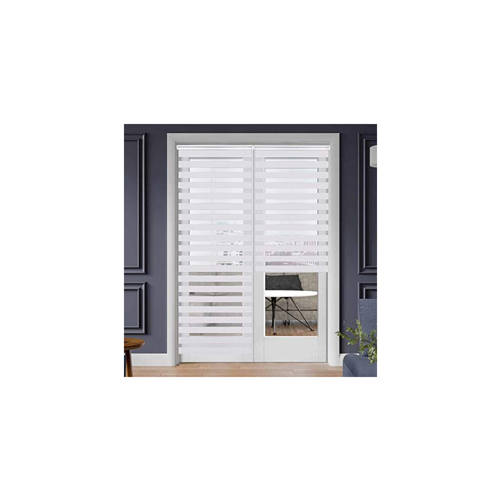 SMONTER Easy Fix Zebra Roller Blind,Day and Night Blinds Curtains with Install Accessories (55CMx150CM,WHITE)