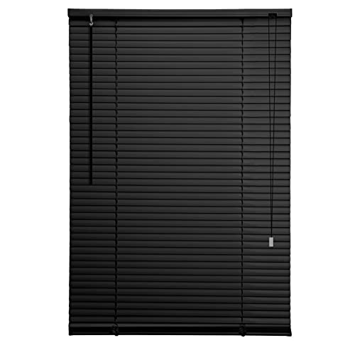 Ruby Deals PVC Venetian Blind Blinds Window 25mm Thin Slats Trimmable Window Blinds Treatments Easy Fit Curtains with Metal Headrail & Fittings Home Office(Black 225W x 213H cm)
