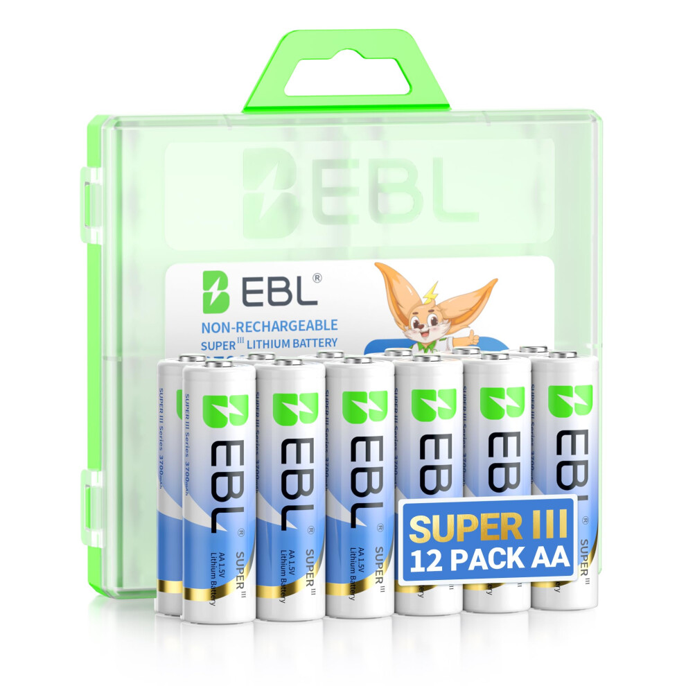 EBL Lithium AA Batteries, 1.5V High Power 3700mAh 12 Pack Family Size (Non-Rechargeable), for Blink Camera, Smart Lock in Winter