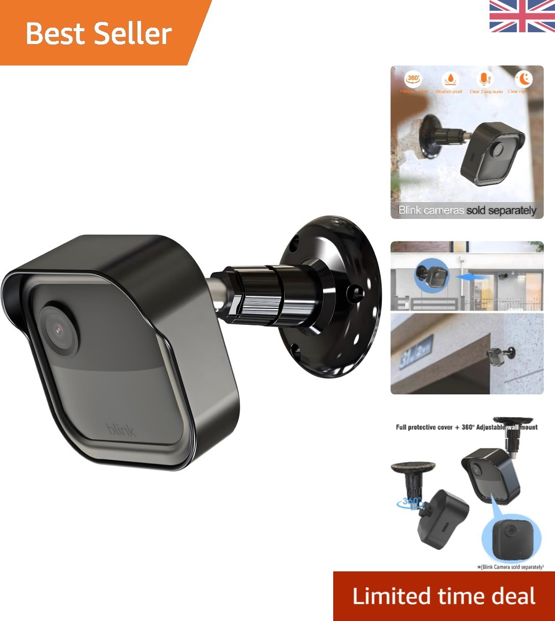 Blink Outdoor Camera Mount 360° Adjustable Wall Bracket Weatherproof Black