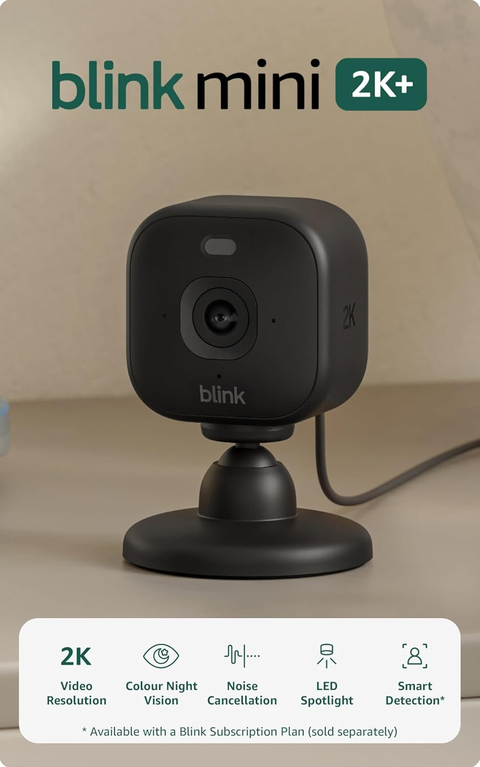 Blink Mini 2K+ (Newest Gen) | Plug-In Home Security Camera with 2K Video Resolut