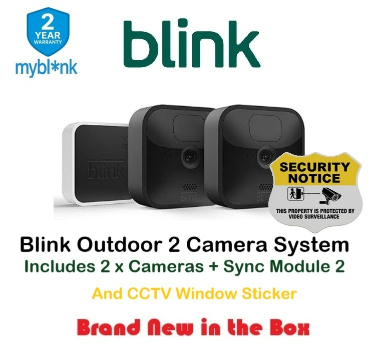 New Blink Wireless HD Smart Security Gen 3, 2 Camera System + CCTV Sticker