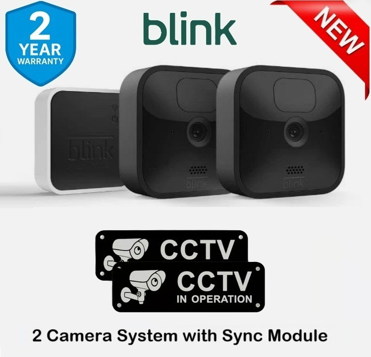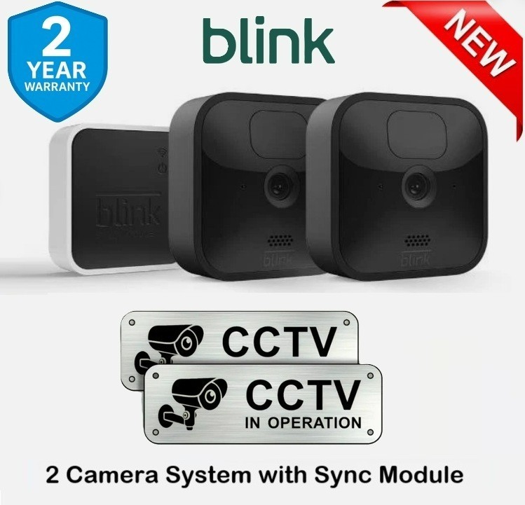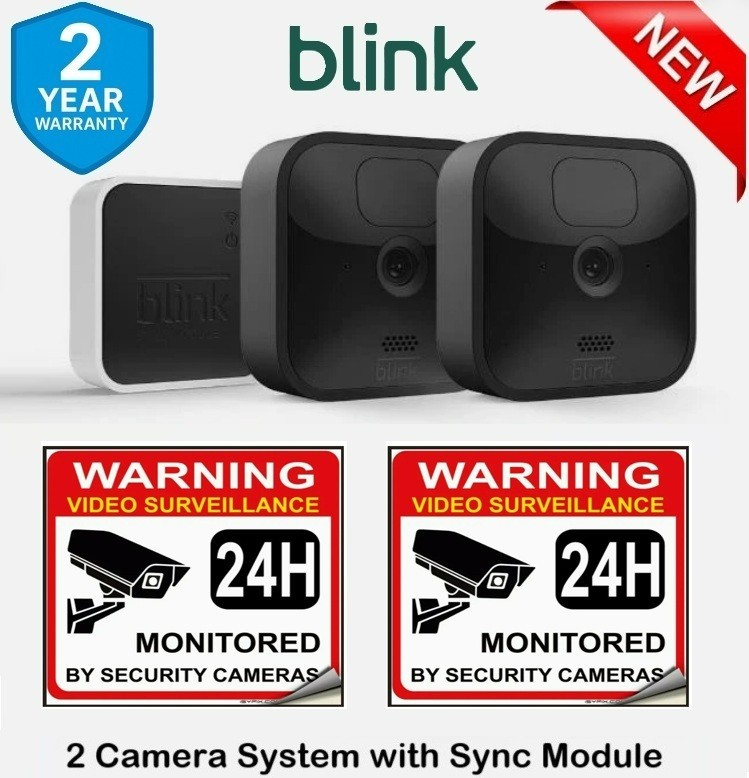 New Blink Wireless HD Smart Gen 3 Security 2 Camera System + 2 CCTV Metal Signs