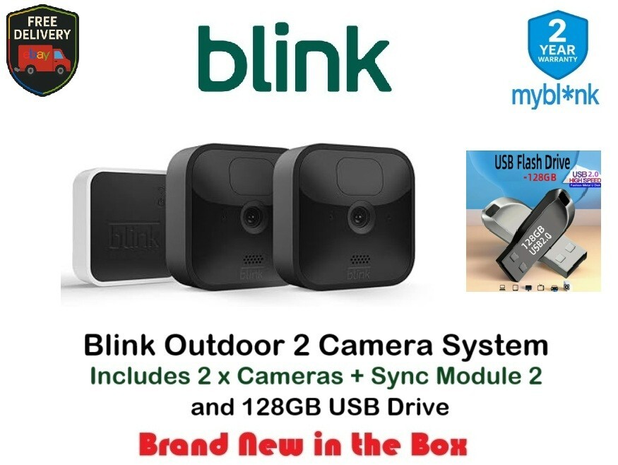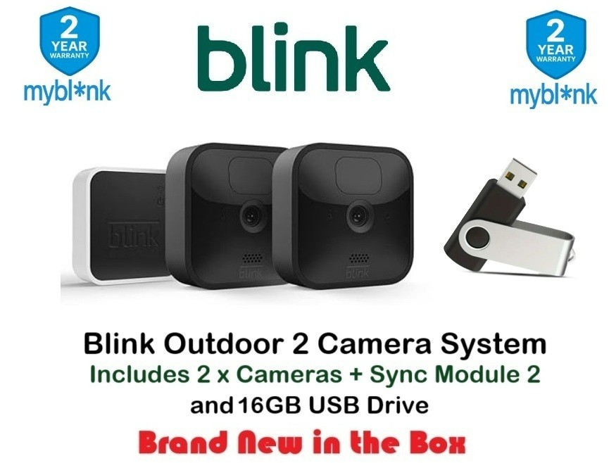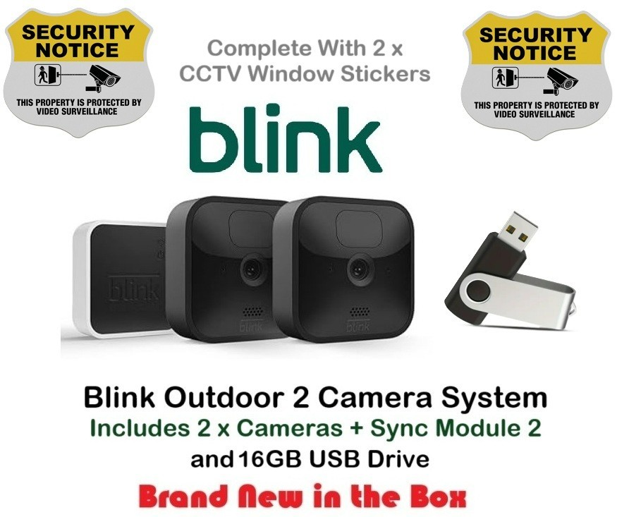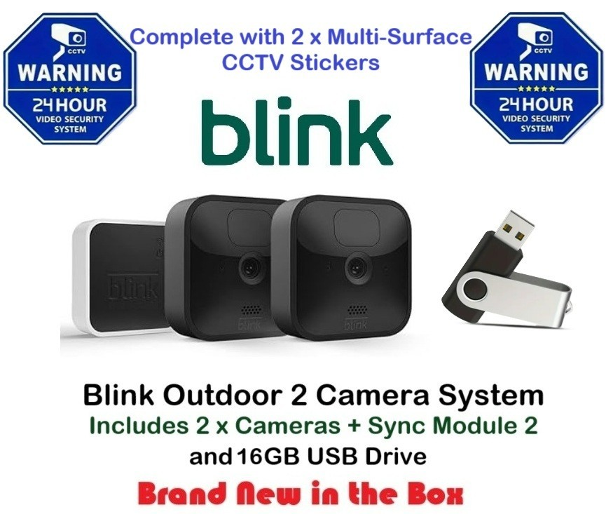 Blink Wireless HD Smart Gen3 Security 2 Camera System + 16GB USB + CCTV Stickers